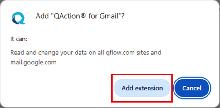 When prompted with what access the QAction for Gmail extension will have, click on “Add extension”.