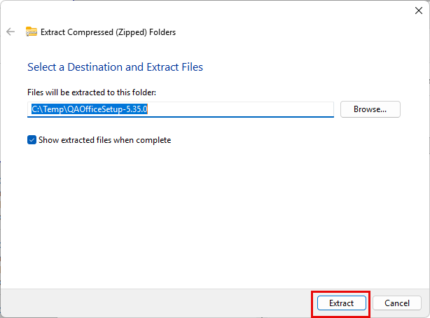 When prompted where to extract the files contained in the .ZIP file, use the suggested location and click “Extract”.
