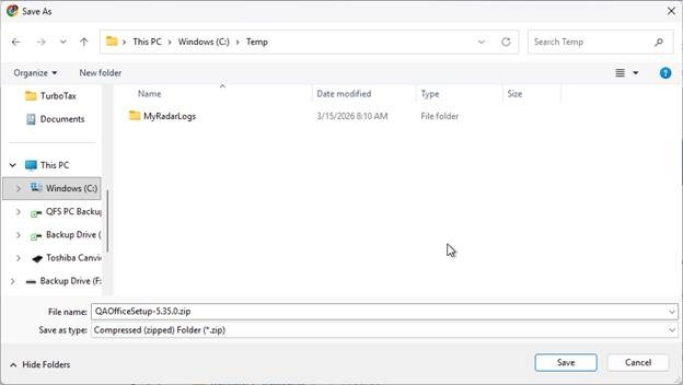 When prompted where to save the downloaded file, select a location and click “Save”.