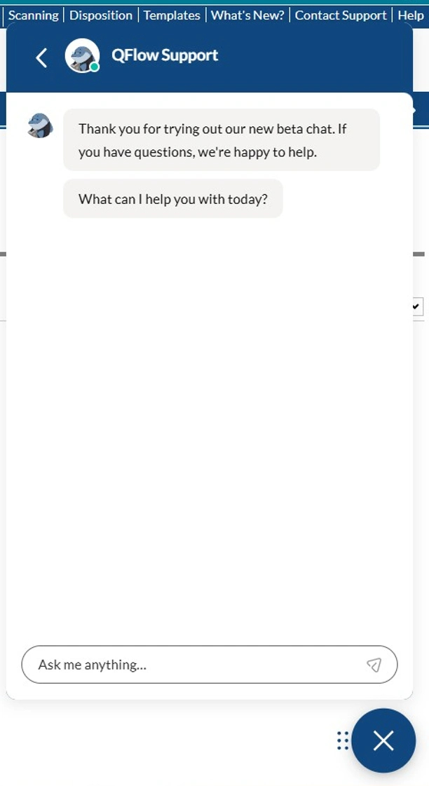 You can also initiate a chat by clicking the QAction Support Bot icon.